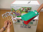 Egg”「へんなタマゴ」のいろいろなタマゴにみんな興味津々。事前にヘンなタマゴの予想図を子供たちに描いてもらったのですが、ホントいろいろ。そしてお話の最後にカモさんの特大たまごの正体が判って、皆でまたまたビックリ!! タマゴ予想図を見せ合ったりとても楽しい読み聞かせになりました。