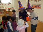 Mr Wolf!’と言って追い払いました。 2冊目は、パペット付きの楽しい絵本「オオカミさん、今何時?」いつでもお腹を空かしているオオカミの一日の行動を、朝から時間を追ってみていきます。夕方6時、やっと夕ご飯の時間となりました。あれ〜、テーブルの上にごちそうがありません!そうオオカミさんが食べたかったのは、君たちだったみたい。ドキターORIOお手製のパペットオオカミが登場!二つのパペットで盛り上がりました。