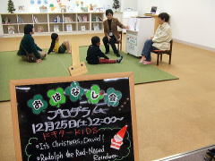 2ヶ月ぶりの英語絵本の読み聞かせ会になりました。とても寒かったのと冬休みに入ったばかりだった為か少人数でした。最初のお話は、It's Christmas, David!相変わらずディビッドは、クリスマスでもやっちゃいます、悪気は無いけどね。そしていよいよイブの夜、ディビッドに何が・・・。どうなるのか心配したけど最後はとてもよかったね。次のお話は、Rudolph, The Red Nosed Reindeer赤鼻のトナカイ、少し長いお話なので省略して読みました。歌は知っているけど元の話は知らない人が多い様です。クリスマスらしいイラストで、最後にはいじめられっ子のルドルフが皆に認められます。おしまいに、ドキターKIDSのHPを見ながら、サンタの国・フィンランドのクリスマスについてお話を聞きました。