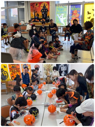 最強の台風19号に恐怖を感じた日の翌日でしたが、晴天となり、予定通りイベントを行うことが出来ました。29人の子ども達と保護者の方達が参加して下さり、楽しくハロウィーンに親しむことが出来ました。お手伝い下さったお母様方、ありがとうございました。