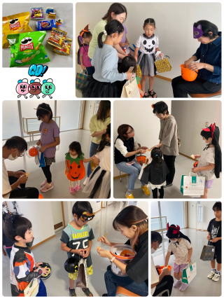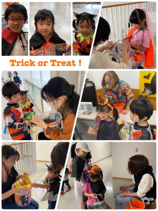 今年のハロウィーンイベントは、ゲームを3つやって、ハロウィーンキャラクターに親しみました。かぼちゃランタンのことを英語で、ジャック・オ・ランタンといいますが、どうしてジャックという人の名前が付いているのでしょう?オリジナルの紙芝居「ジャックのお話」で合点できましたか?最後はお待ちかねのトリック・オア・トリーティング!今年はスペインのお菓子をもらいました。子供たちの仮装もとてもかわいく良かったです(*^_^*)